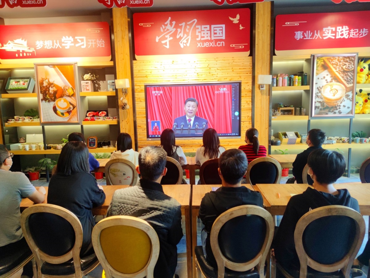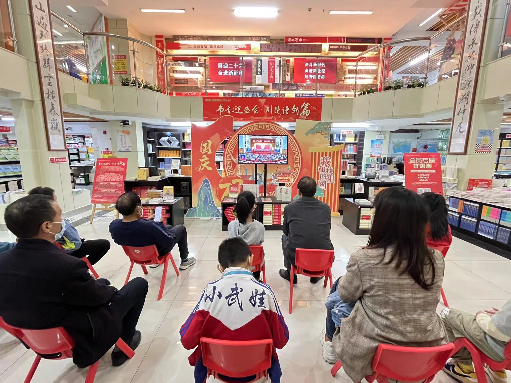 此外,全省各地新華書店紛紛在連鎖門店播放大會實況,方便黨員干部和讀者群眾及時收看黨的二十大開幕式盛況。