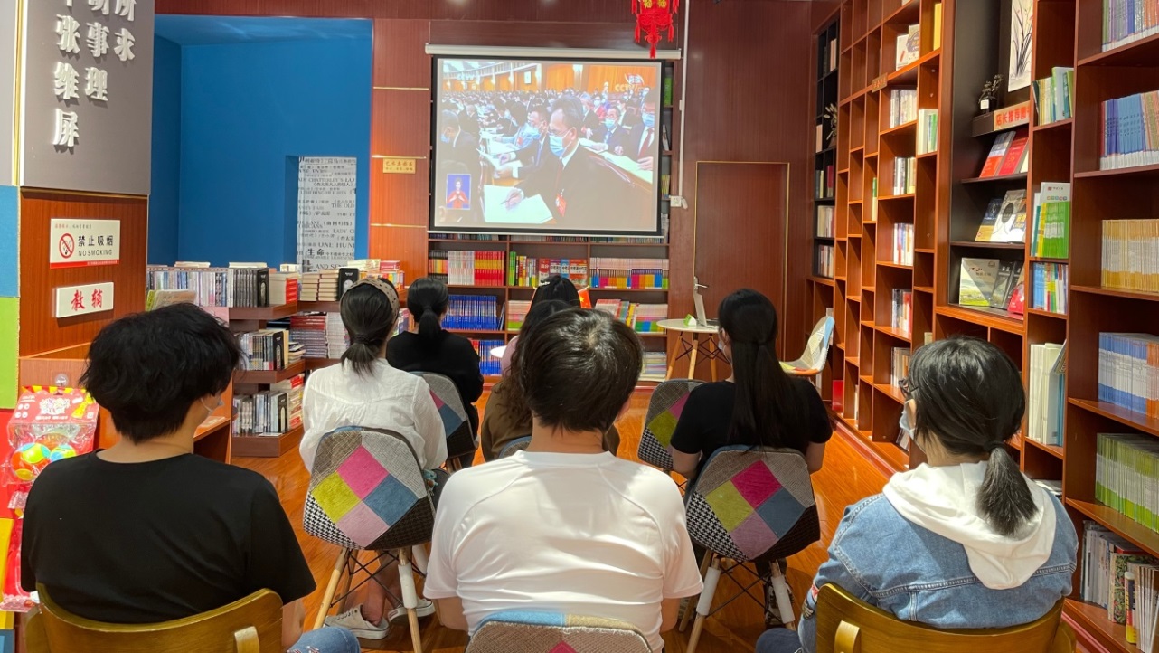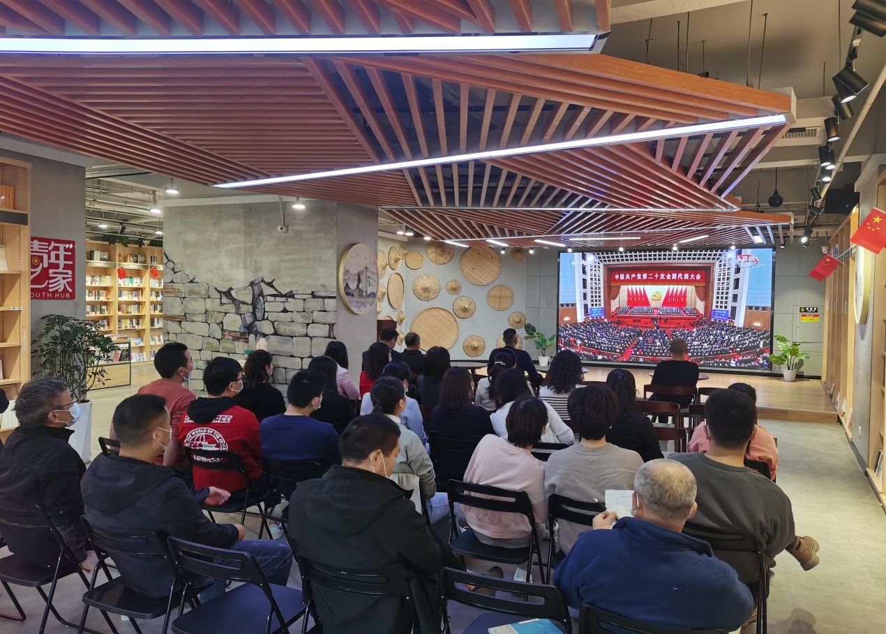 黃岡市分公司組織干部員工及店內(nèi)讀者在遺愛湖書城觀看黨的二十大開幕盛況