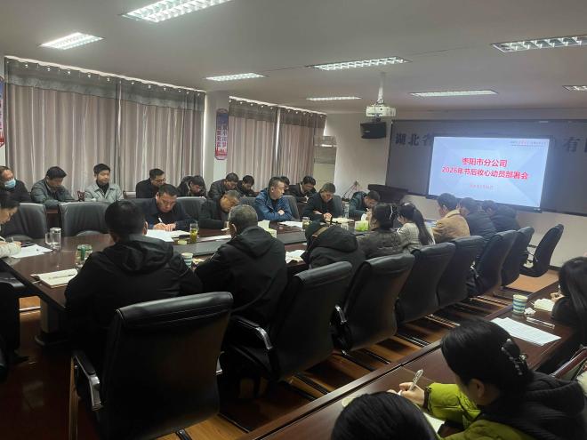 人勤春早爭朝夕,策馬揚鞭開新局。2月24日,春節(jié)后上班第一天,棗陽市分公司召開節(jié)后收心會,動員全體員工迅速收心歸位、擂鼓出征,為實現(xiàn)2026年“十五五”起步之年開門紅、推動分公司高質(zhì)量發(fā)展凝聚奮進力量。會議由經(jīng)理房東主持。